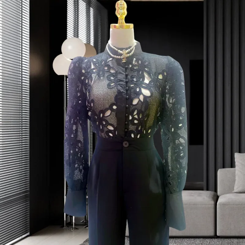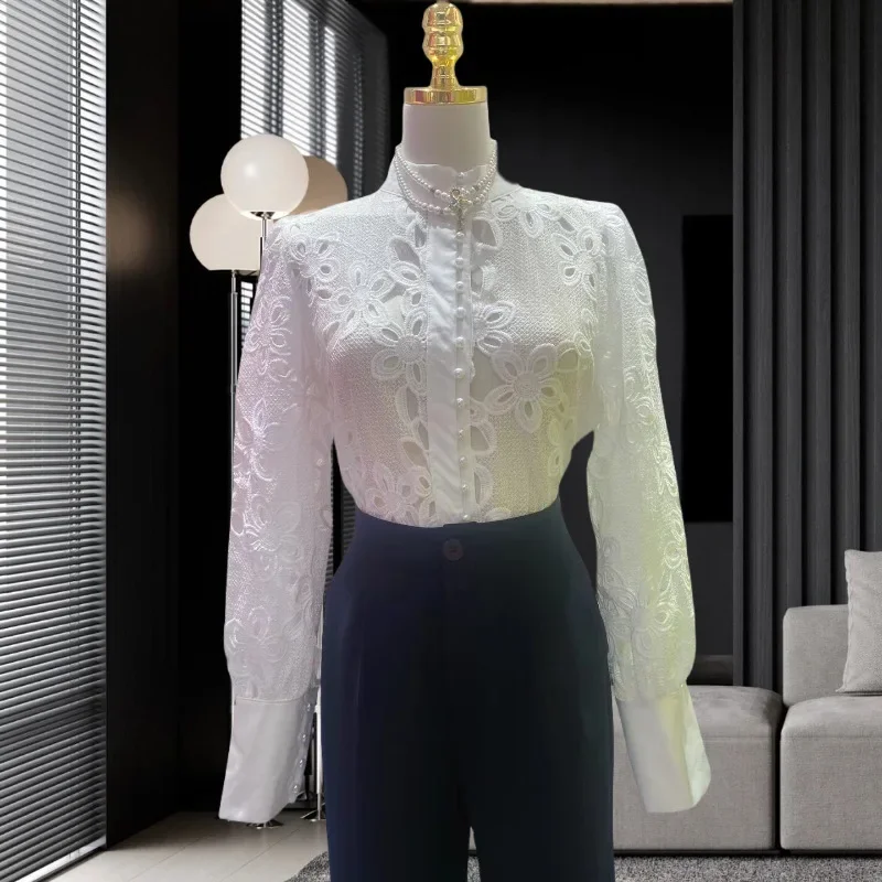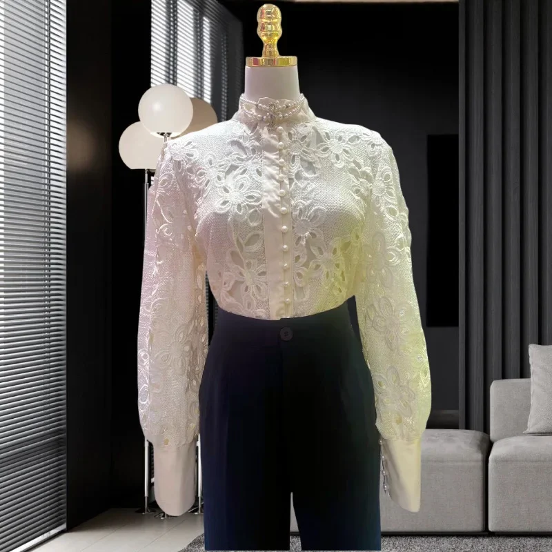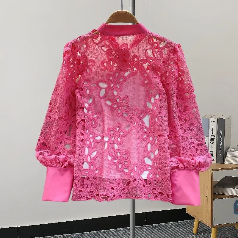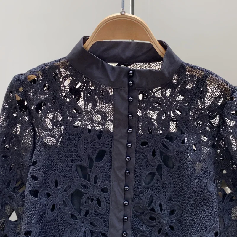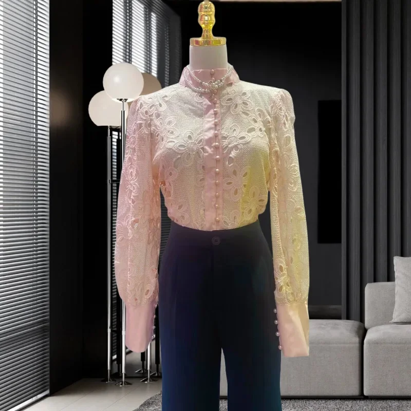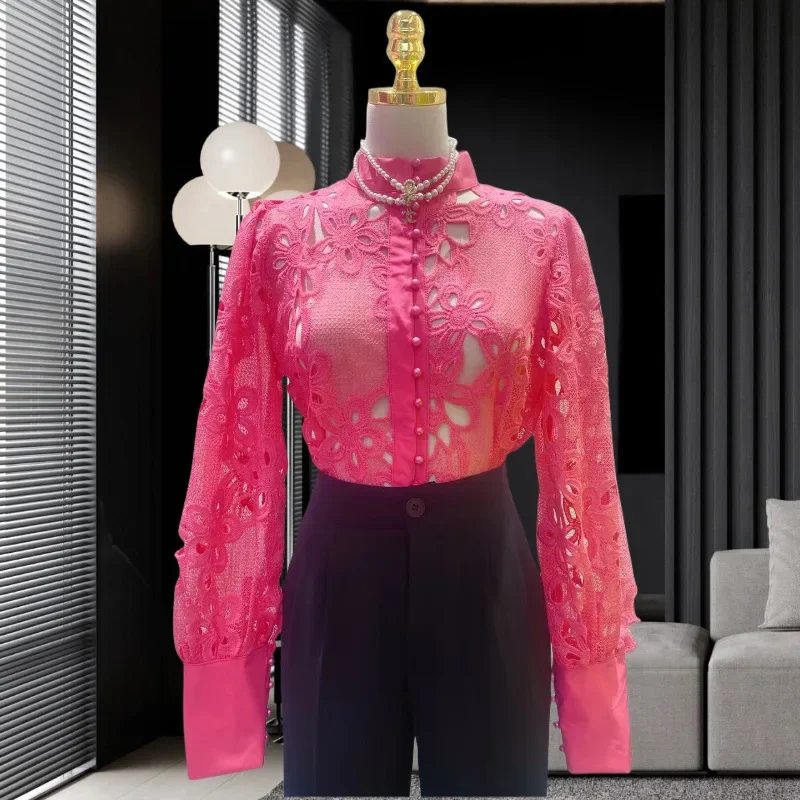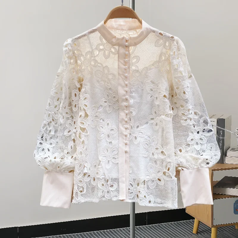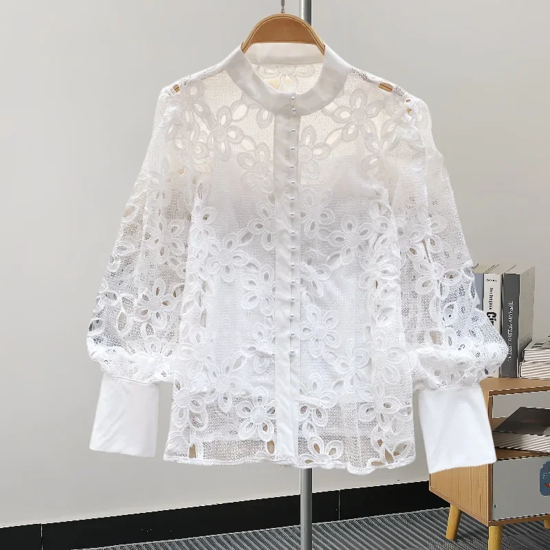 Blusa com Renda e Botões – Elegância Delicada e Atemporal
