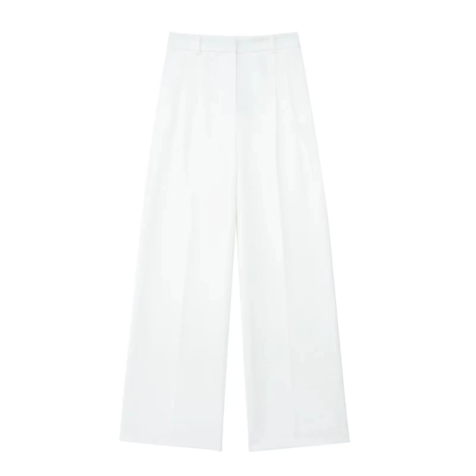 Calça pantalona cintura alta, que alonga e afina a silhueta