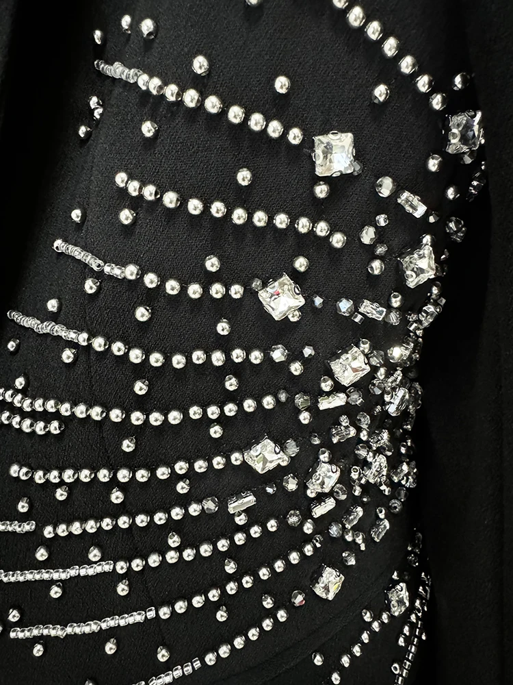 Conjunto Detalhes em Pedrarias - Blazer de Botão Único e Calça Reta – Elegância