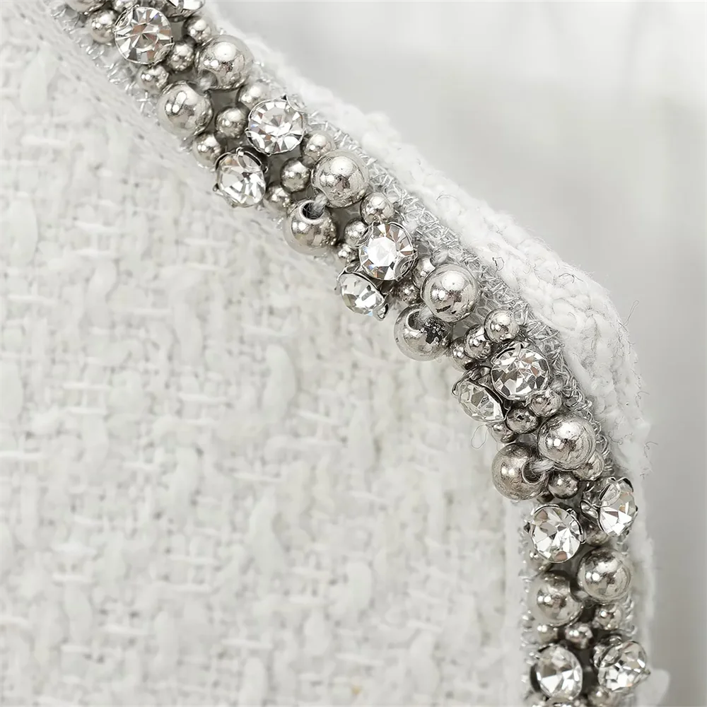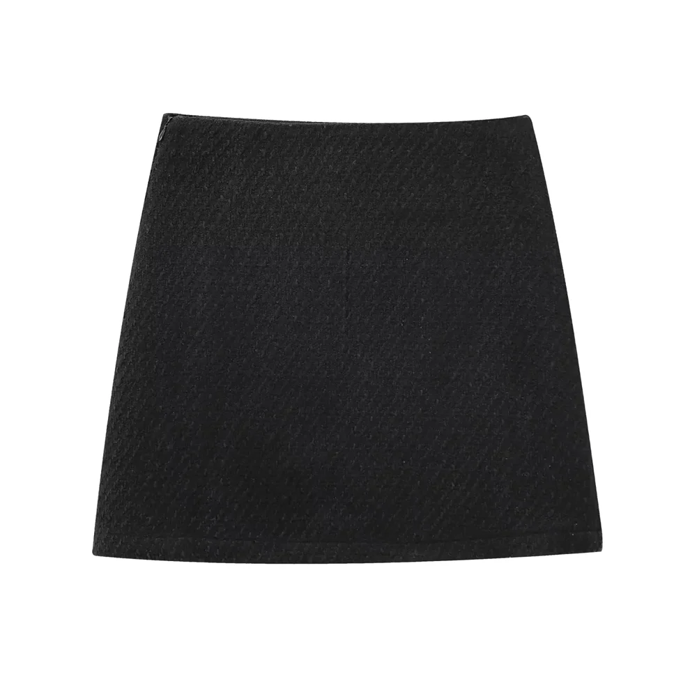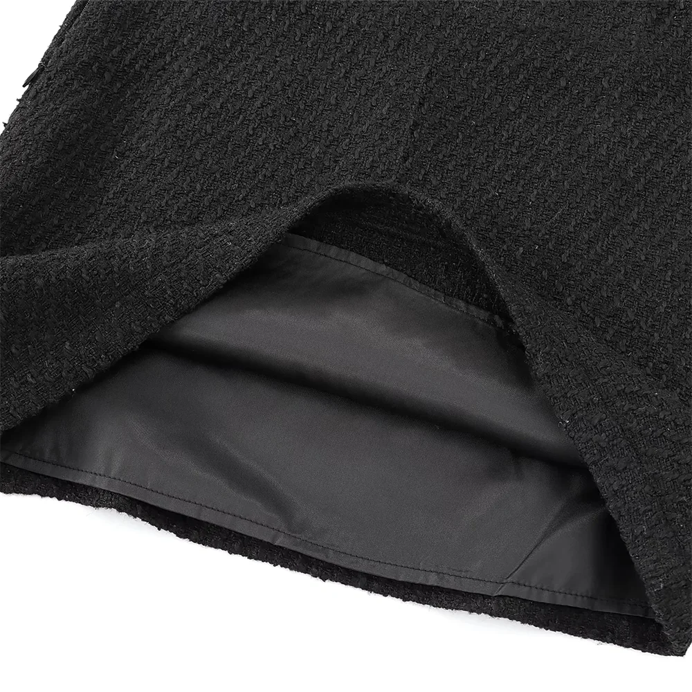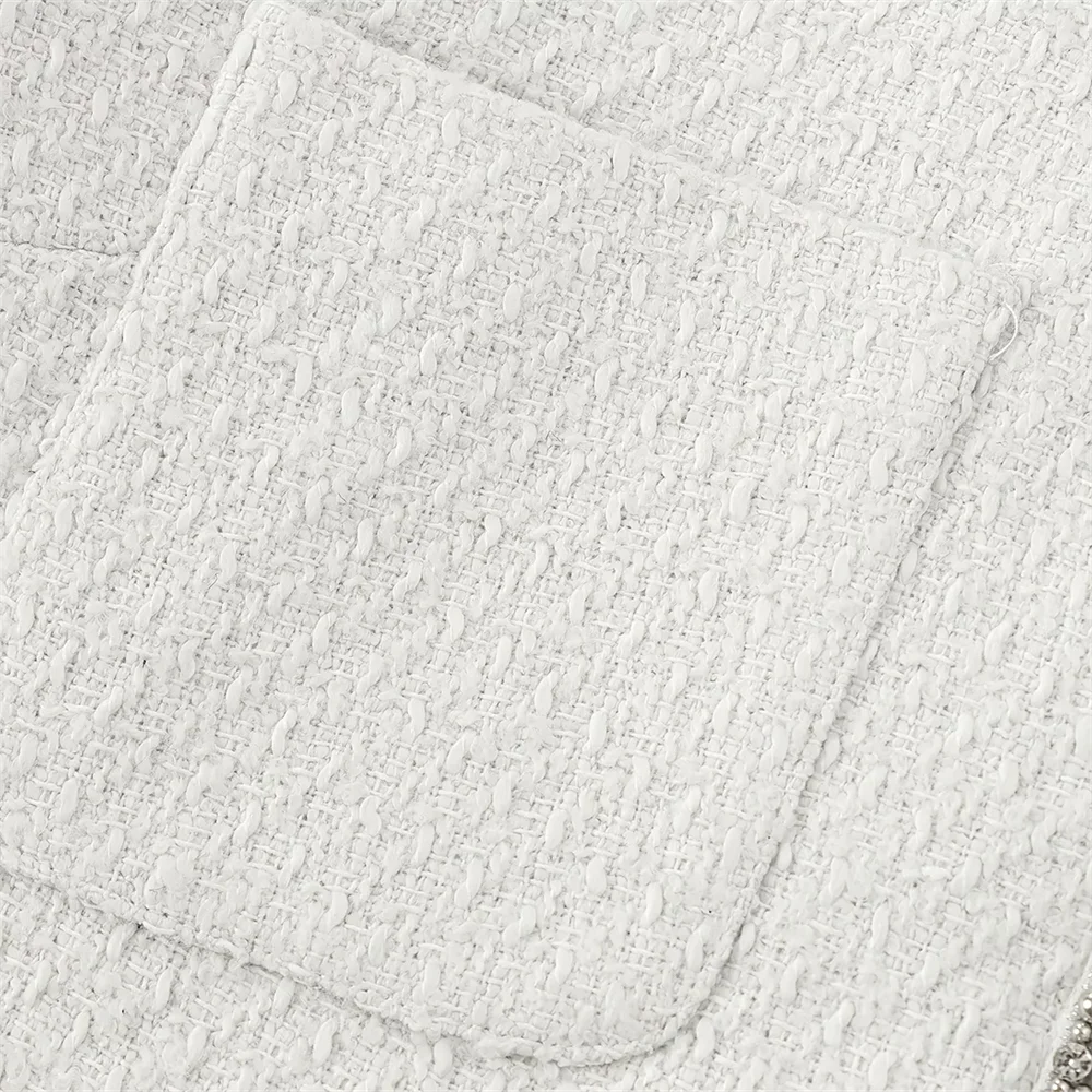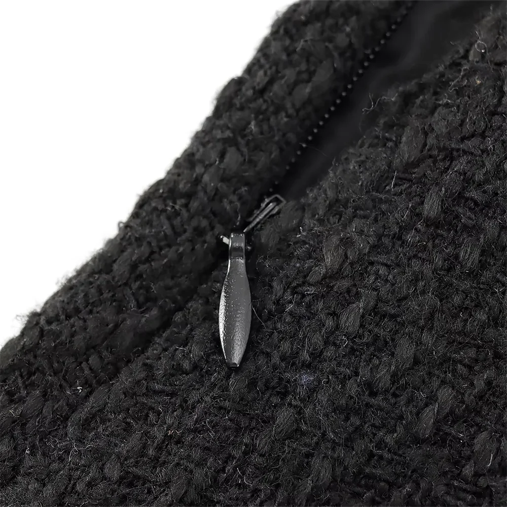 Conjunto Elegante Tweed com Cardigan Bordado em Strass e Saia de Cintura Alta