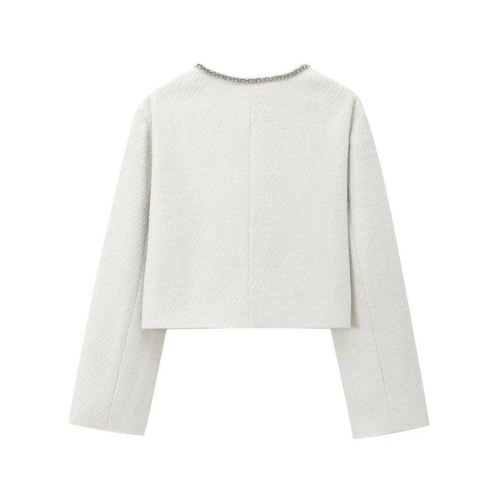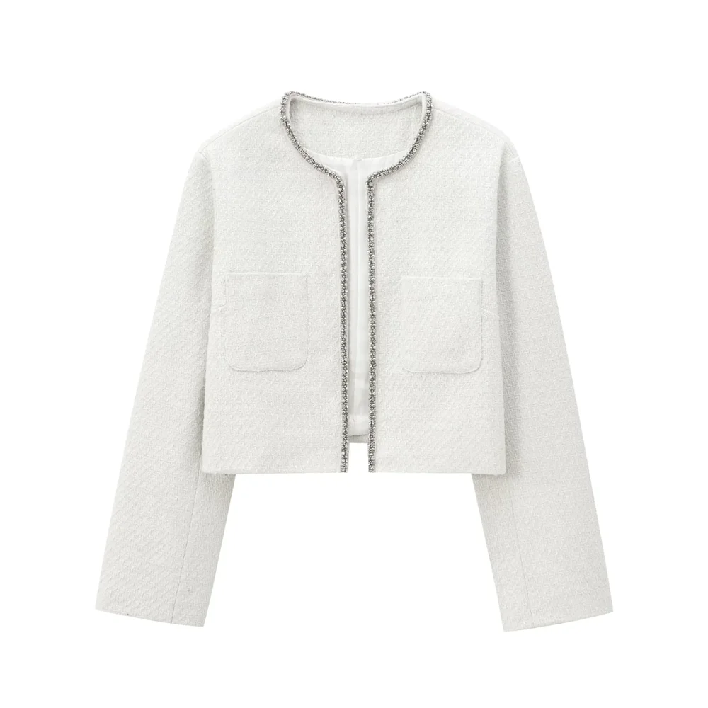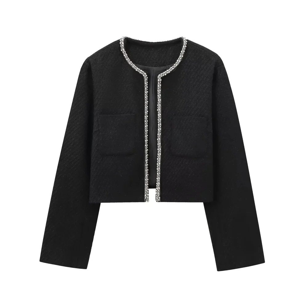 Jaqueta com aplicação de strass e fecho frontal discreto