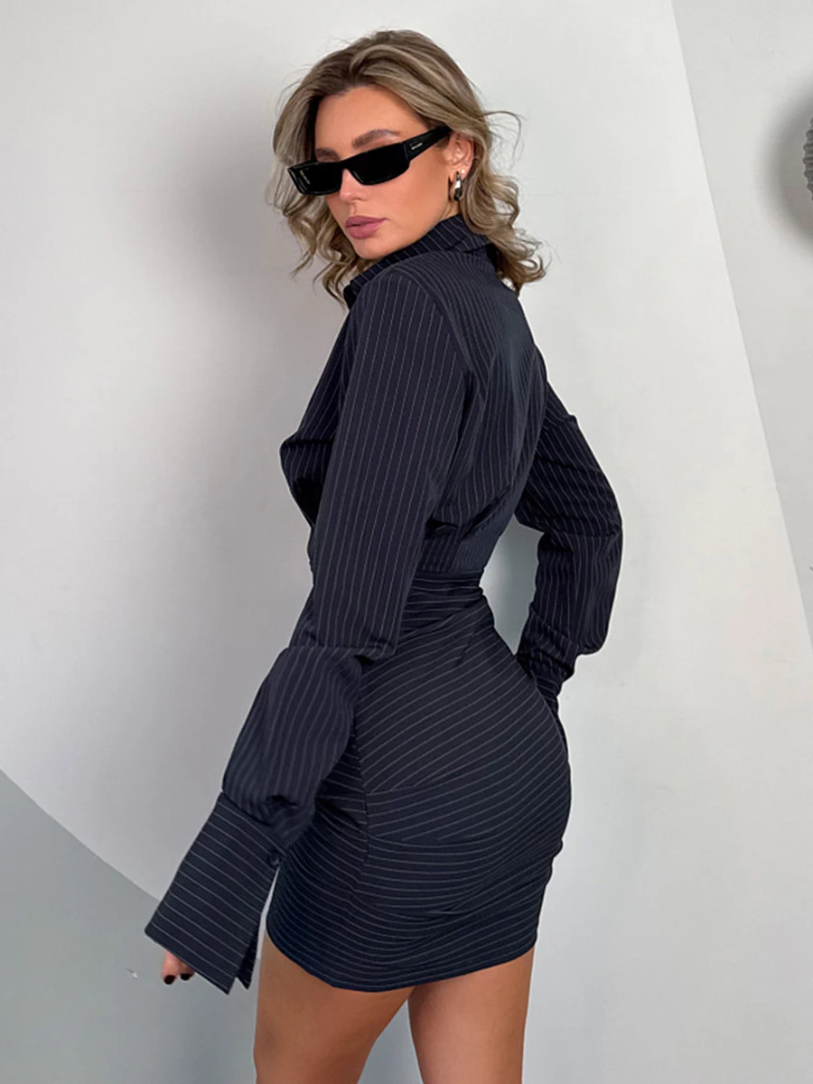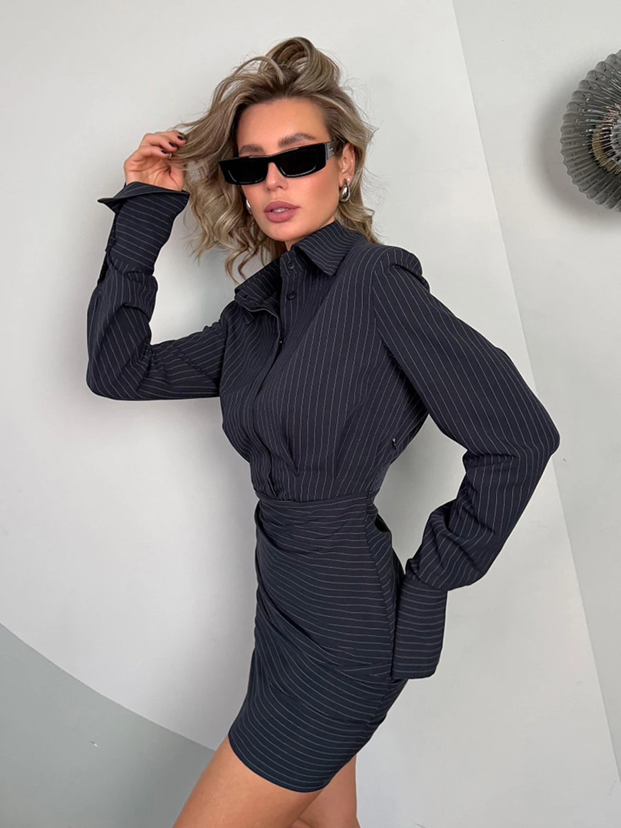 O vestido perfeito para quem busca um visual elegante com aquele toque moderno e feminino! Esse vestido camisa listrado de mangas longas, com gola lapela e detalhe franzido na cintura, traz uma modelagem que valoriza o corpo com muito estilo.
