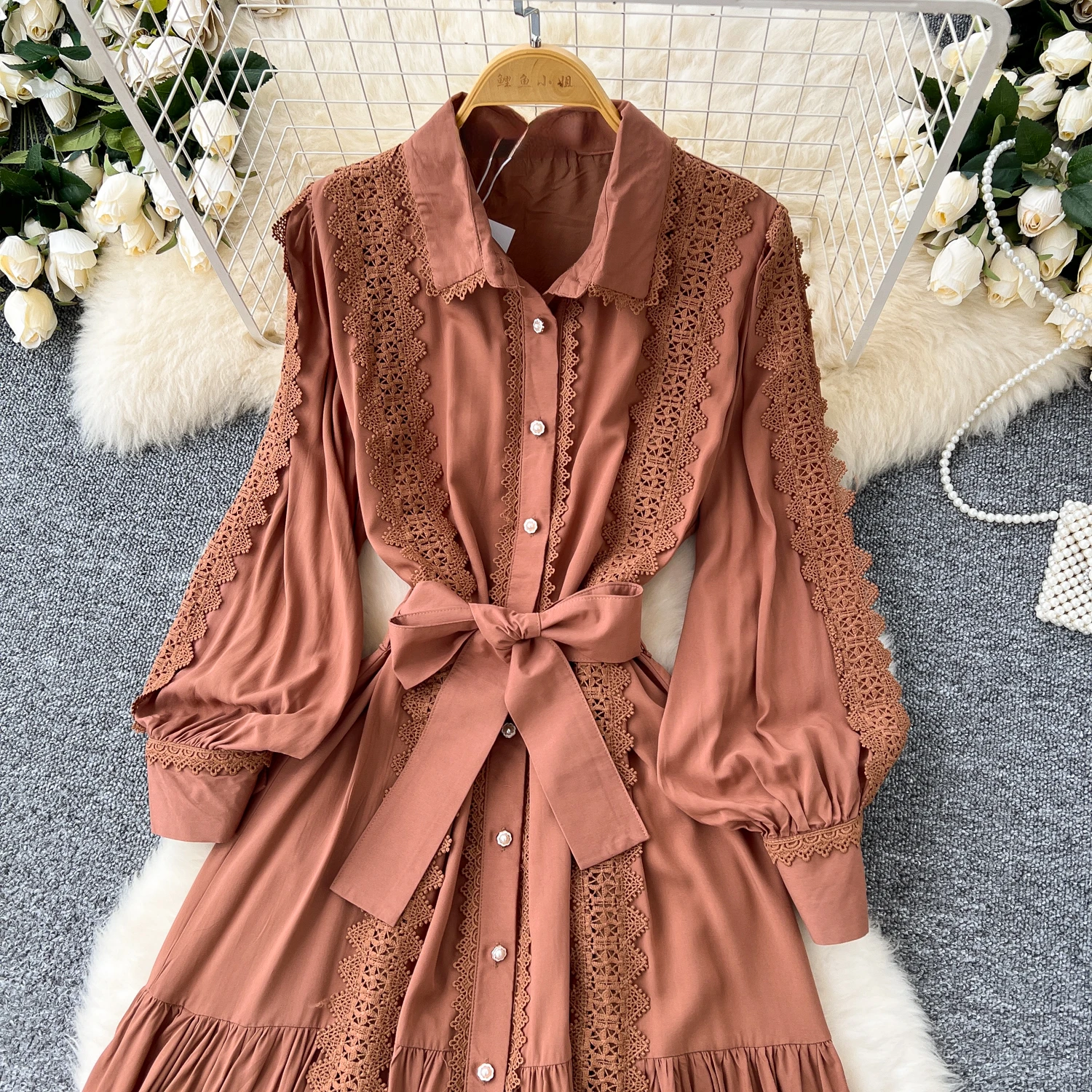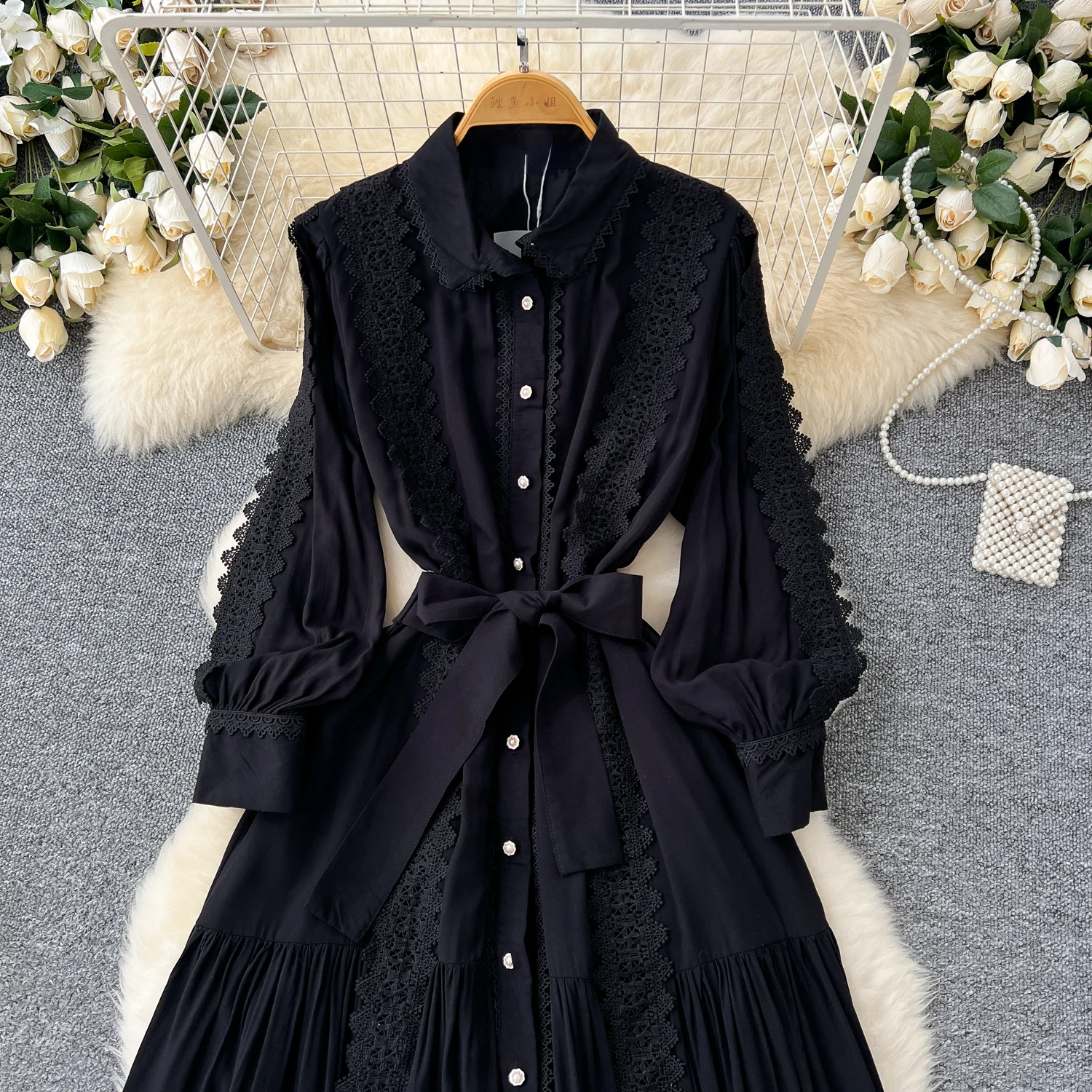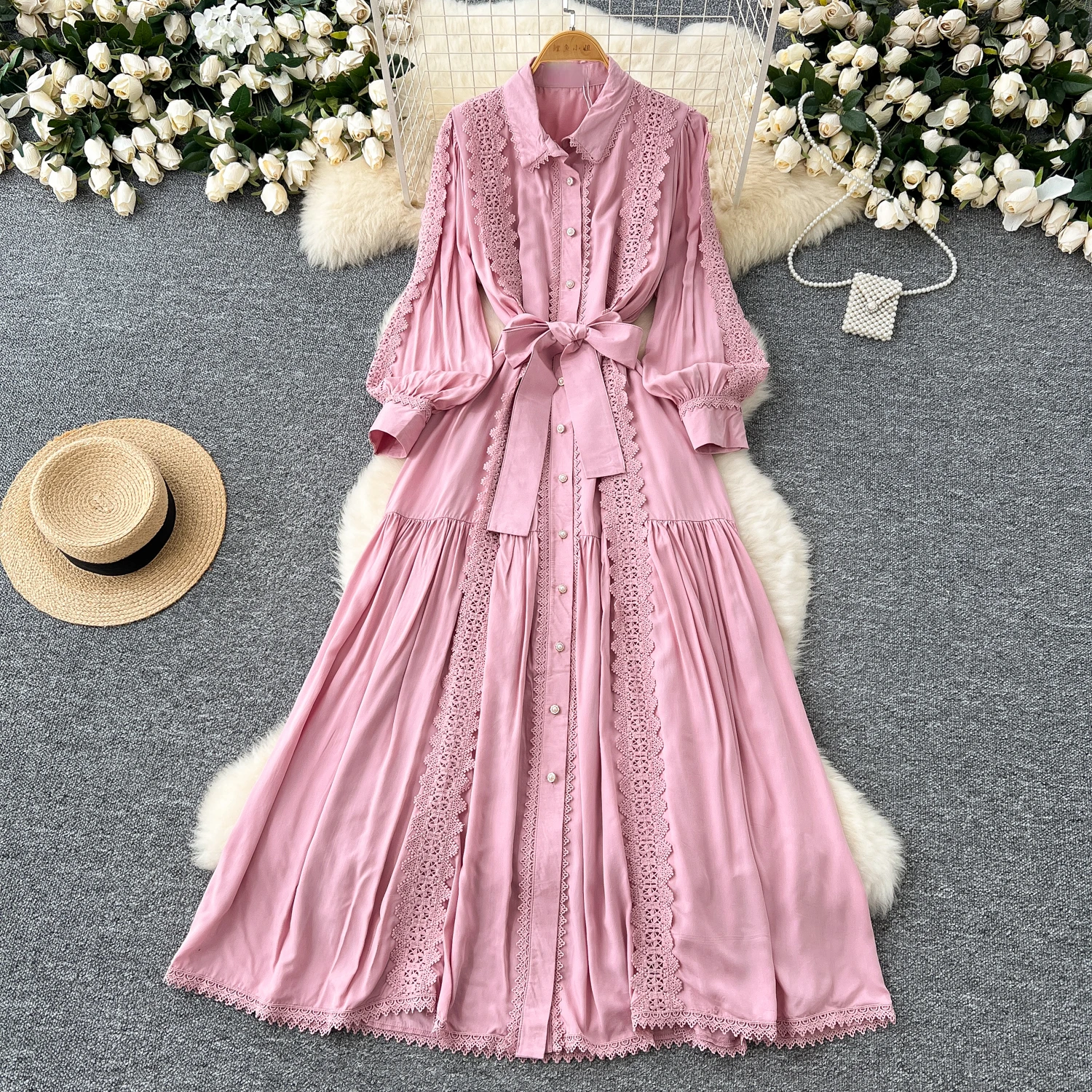 Vestido Longo com Renda e Botões Frontais – Modelagem A-line e Cintura Ajustável